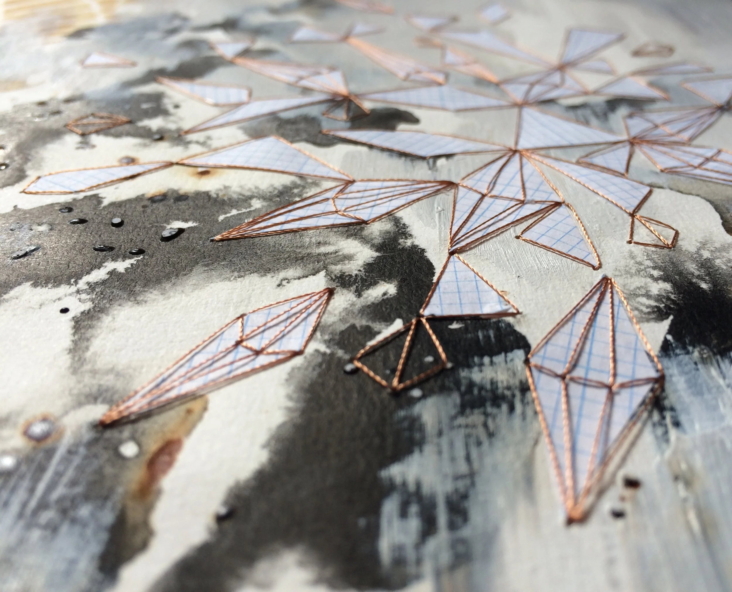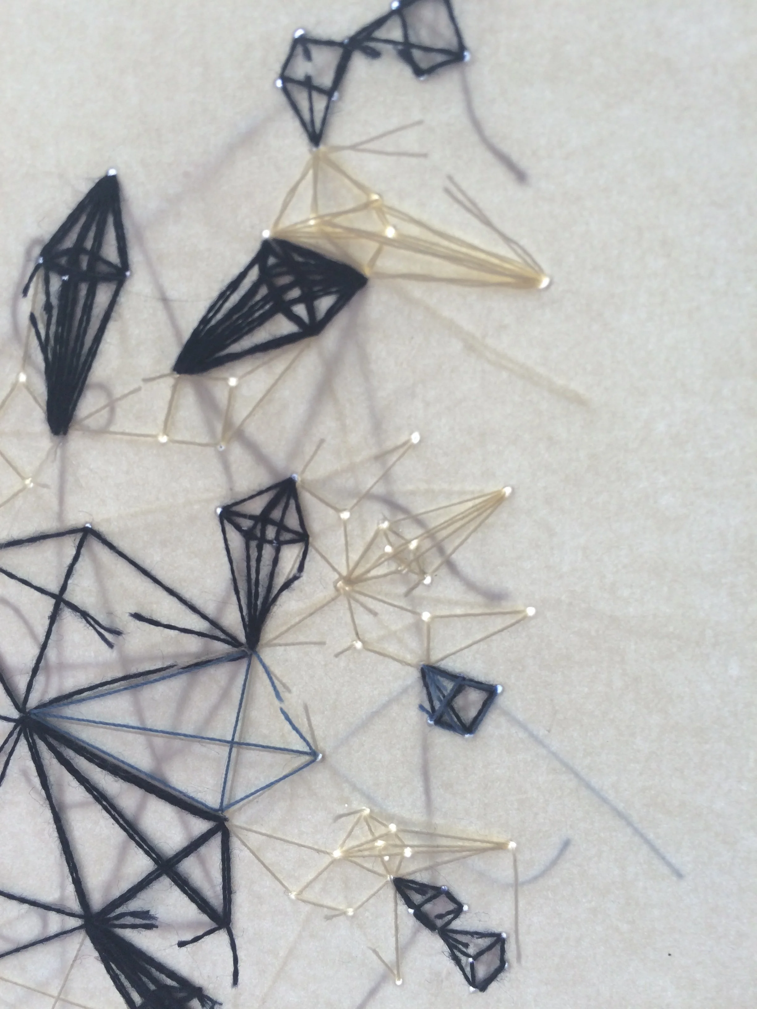 'Stitched datasets' 2018, thread on paper. Prints available from £35.